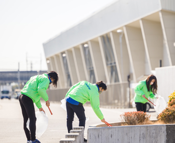 年に数回、上級職が中心となって、会社周辺の清掃活動を実施しています。多くの従業員が通勤で利用する歩行帯、交差点、バス停周辺などが対象です。