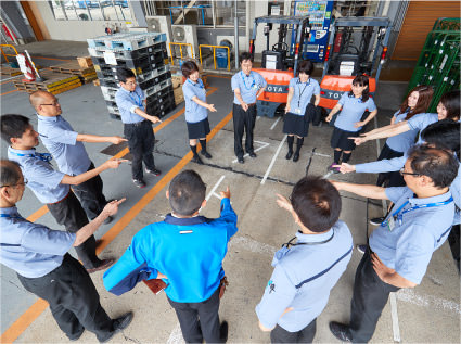 安全衛生パトロール、フォークリフト講習、各職場でのKY(危険予知)活動など、全従業員が参加して安全推進活動を行っています。